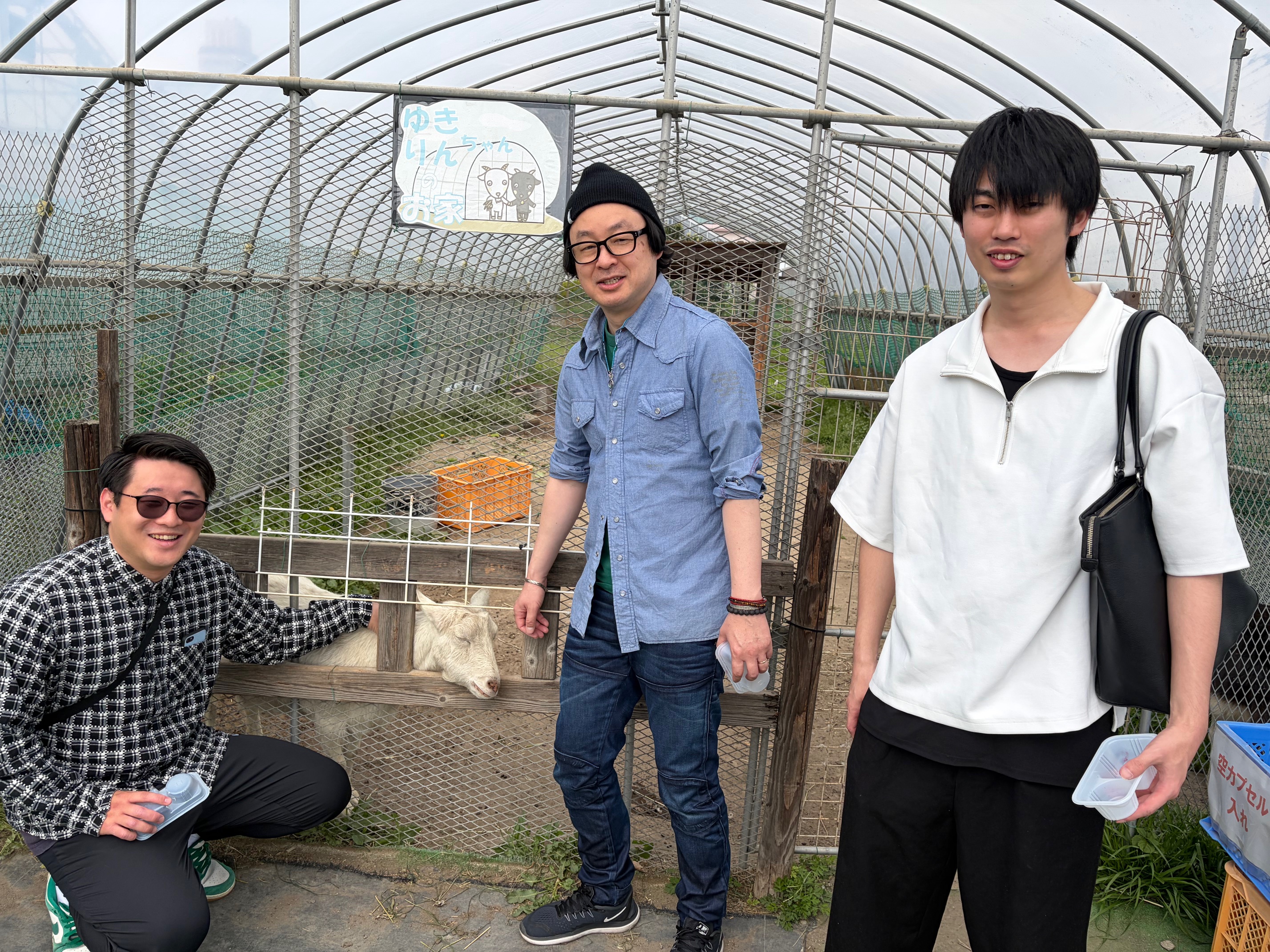 一方で、早めにいちごを満足したメンバーはヤギと触れ合ったり、