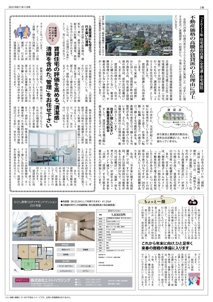 2025年11月号エスト賃貸経営新聞の賃貸経営新聞 | 埼玉の不動産投資・収益物件・建物管理|株式会社エストハウジング
