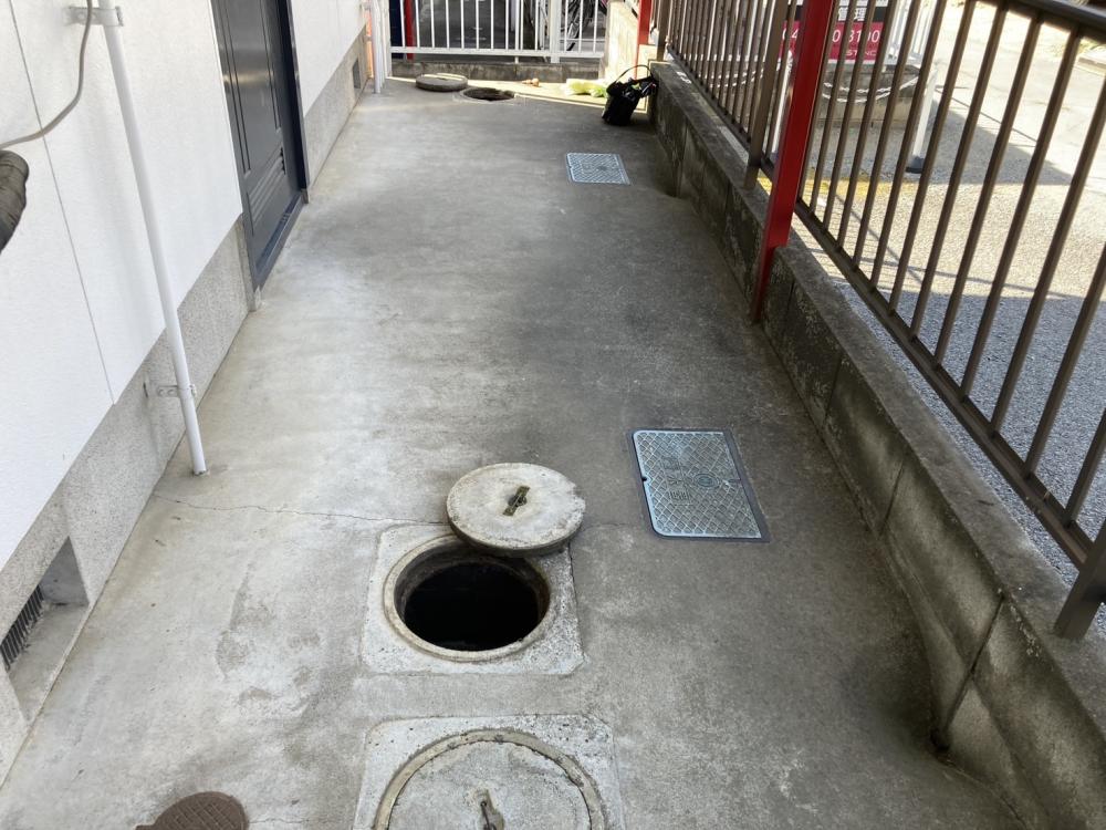 共用部の配管(排水管)に溜まった油汚れは、マンション等で詰まりの原因となるため、1〜2年に1度の高圧洗浄が必須です。